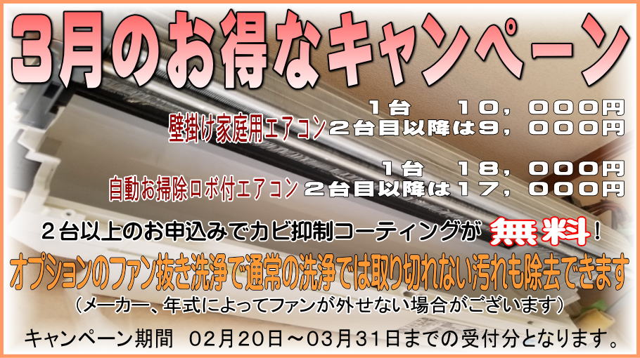 普段見えないエアコン内部には カビ、ホコリ、ダニでいっぱい。 分解してエアコン専用の高圧洗浄機で 内部の汚れを徹底的に除去! クリーニングで効きが良くなり電気代も節約。 お掃除ロボ付エアコンや業務用エアコンも お任せください! |